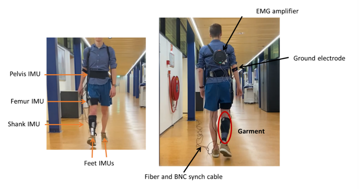 Integrating SAGA into this setup enhances the richness of the captured data by adding HD-EMG capabilities. IMUs and HD-EMG have been successfully combined in various open-source datasets aiming to understand neural control in overground walking, including variants such as stair ascent/descent. This combination holds potential for applications in robotic control of prostheses.